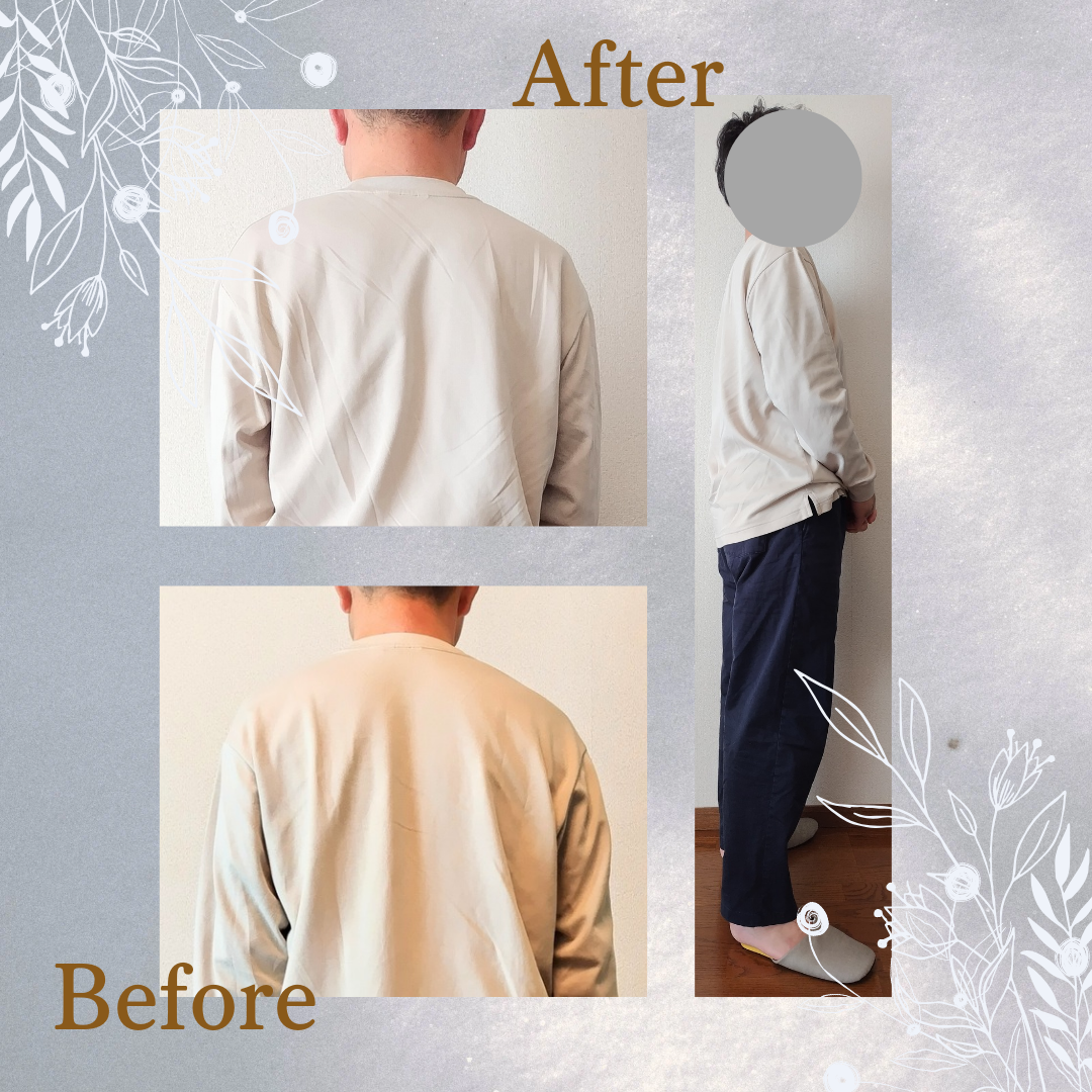 自覚症状は肩凝り、頭痛、目の疲れでした。デスクワークが主な仕事をされていて、足を組む癖があり、背中の張り、肩が常に上がっていました。症状が出る要因はあったので筋肉がほぐれたらと思っていましたが・・・呼